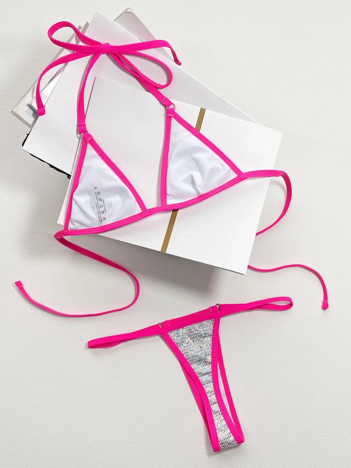 KEKOKINIS ALISON SHINY BLACK THONG BIKINI SET