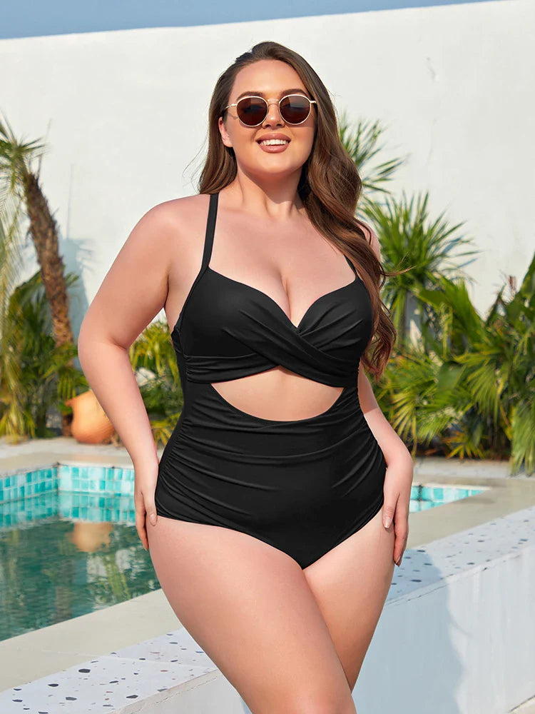 Redefine your swimwear style with the KEKOKINIS ANDA SOLID PLUS SIZE V-NECK ONE PIECE SWIMSUIT — a bold blend of comfort, curve-enhancing support, and sleek design. Crafted to celebrate your shape, this halter-style piece flatters with a plunging neckline and strategic hollow-out detailing.