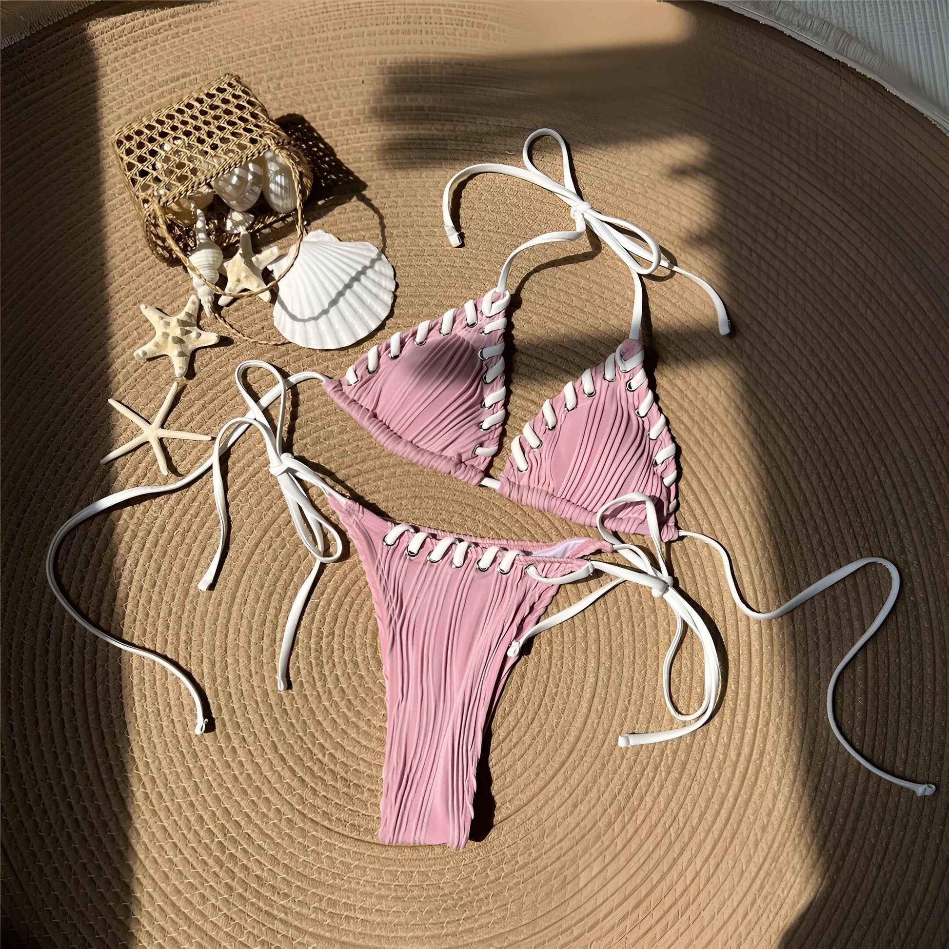 The KEKOKINIS CROSSO Bikini Set features a trendy 3-color halter design with stylish straps and a high leg cut that flatters your figure beautifully. Perfect for any swim occasion, this low waist swimsuit combines comfort and fashion effortlessly, making you stand out wherever you go.