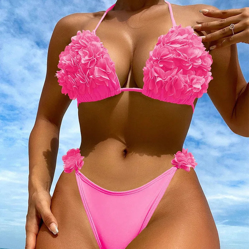 Embrace summer vibes with the KEKOKINIS Ditsy 3D Flower Decor Bikini Set, featuring intricate floral details and a flattering low waist design. This sexy two-piece swimsuit offers a wire-free, comfortable fit—perfect for beach days or poolside lounging with style and confidence.