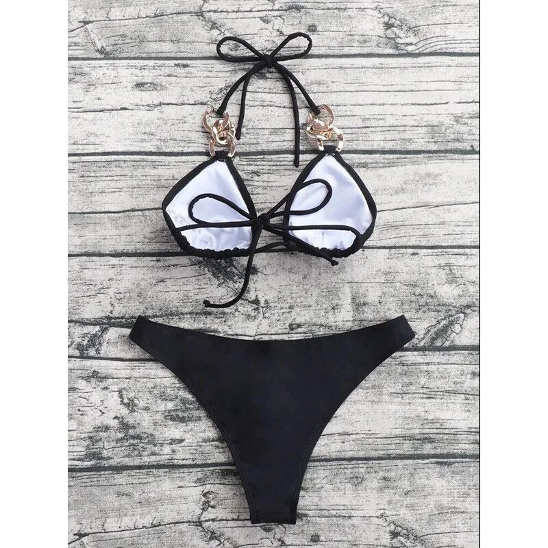 Unveil your inner goddess with the KEKOKINIS ELEGANCE — a two-piece swim set designed to exude subtle luxury and modern sensuality. With its clean solid tone, tie accents, and sleek chain details, this bikini offers a minimalist statement that still turns heads. High-cut bottoms elongate your silhouette, while the wire-free top with removable pads gives you comfort and confidence from sunrise to sunset.