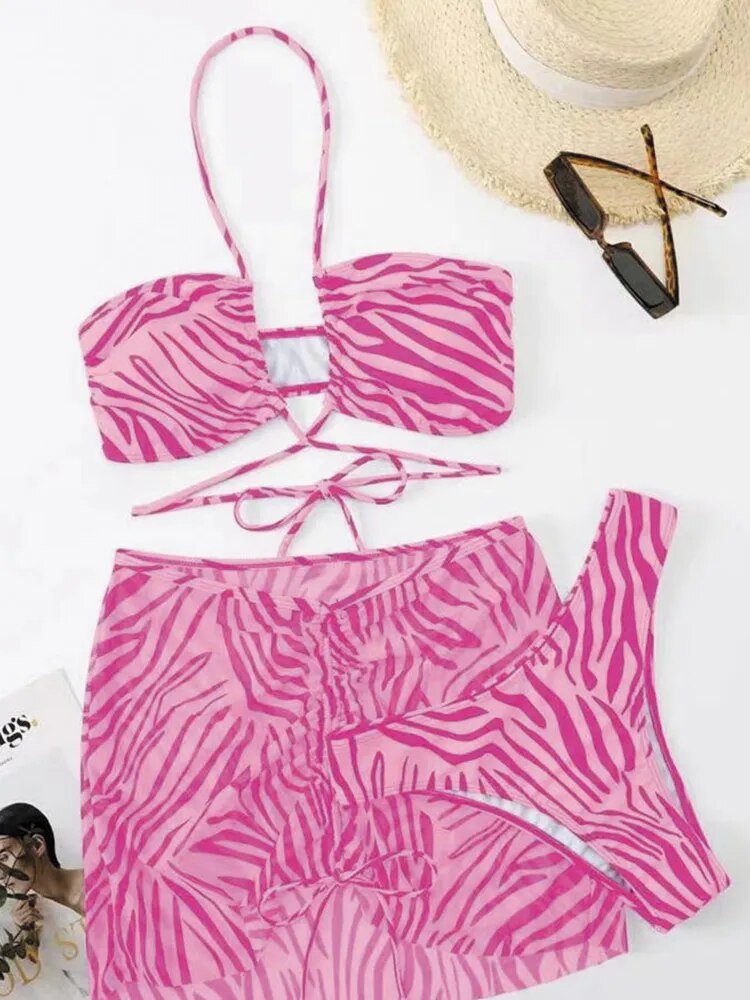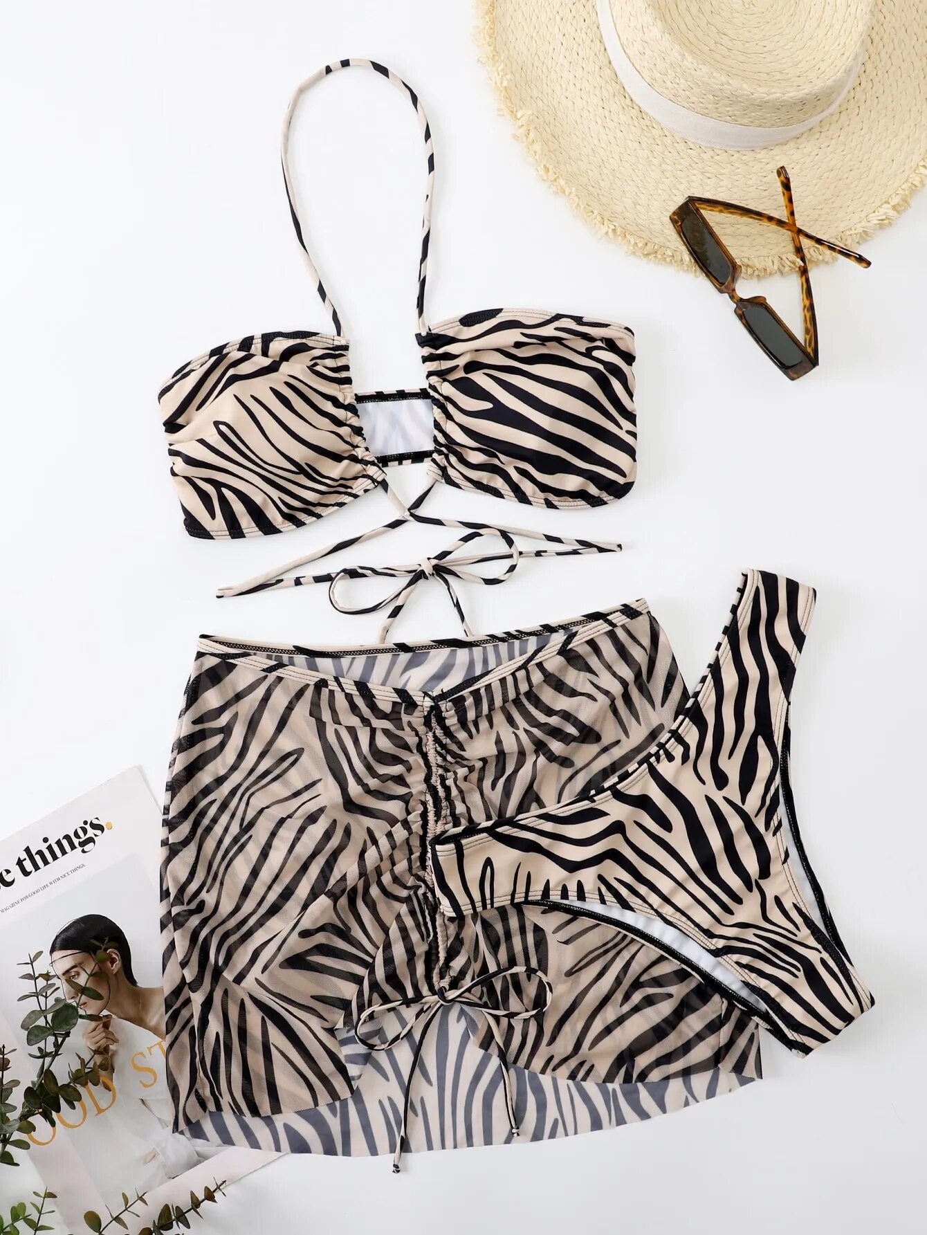 ✔ 3-PIECE SET – Versatile zebra stripe bikini with full outfit impact