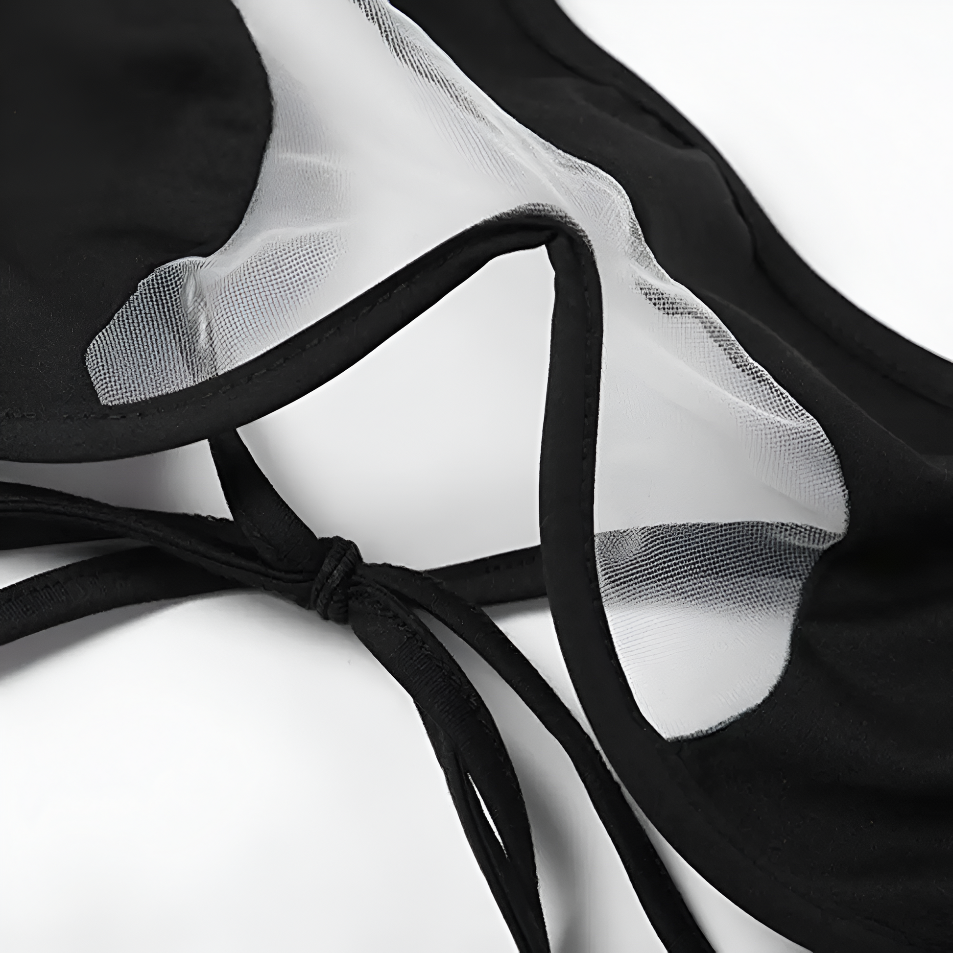 The KEKOKINIS JESS bikini set brings bold heat and daring style to the shore. Designed with a seductive bandage mesh patchwork, this two-piece suit delivers a fierce silhouette and a barely-there vibe that radiates summer confidence. Perfect for standing out on your next getaway.