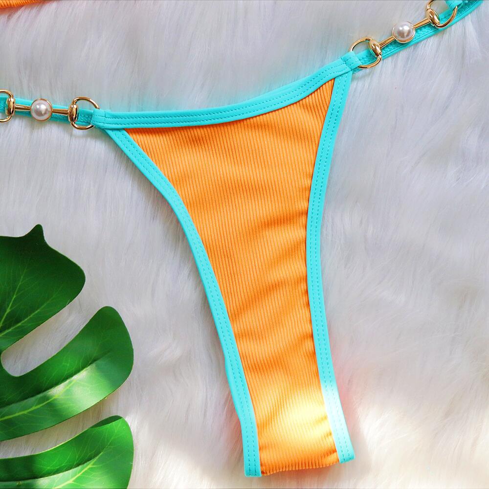 - FLATTERING FIT: Customizable strappy halter top and tie-side thong bottom hug your figure beautifully.