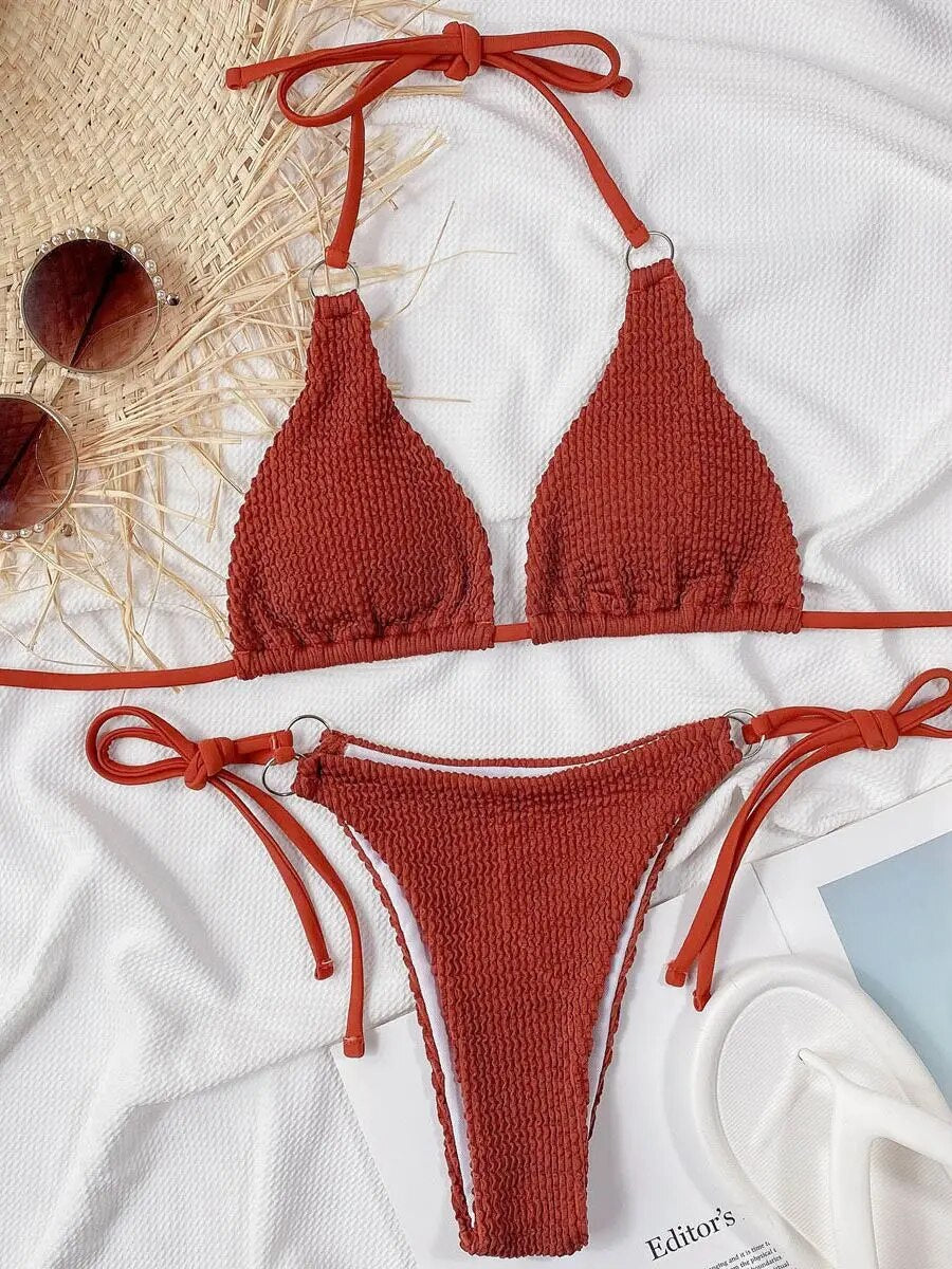 KEKOKINIS TANGA SOLID TIE-SIDE BIKINI SET – STYLISH & COMFORTABLE BEACHWEAR