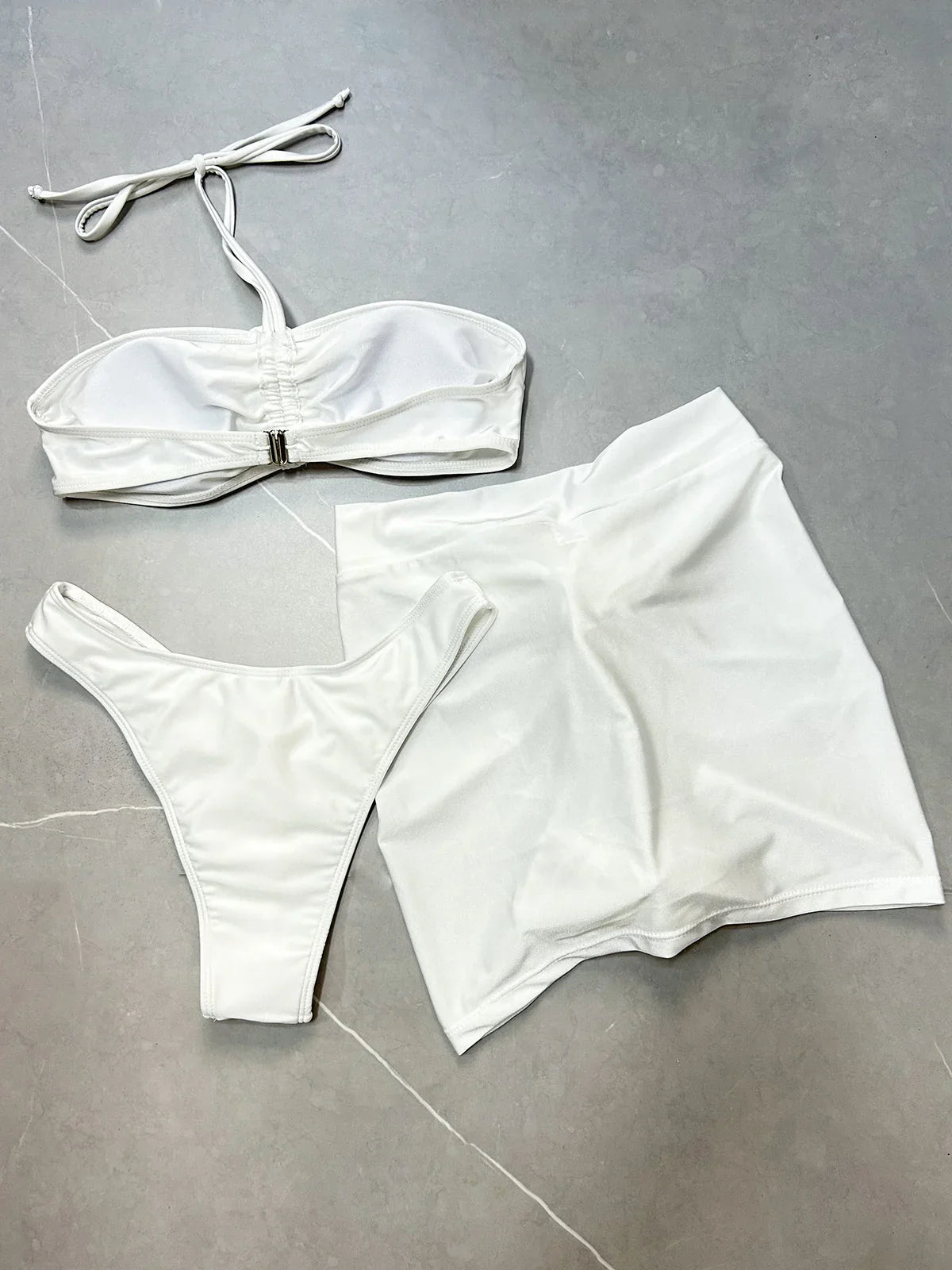KEKOKINIS NATAW is your perfect swimwear companion for 2025. This high-waisted, three-piece bikini set combines beach style with comfort, featuring a solid pattern and removable padding for customizable support. Whether you're lounging by the pool or hitting the beach, this set ensures you look and feel your best.