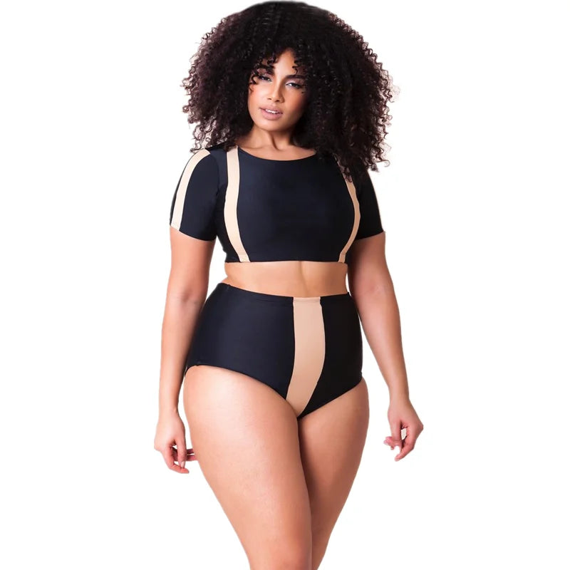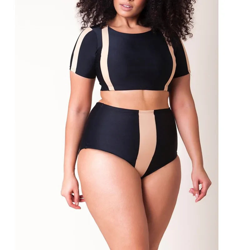 The KEKOKINIS PEREO Bikini Set is designed to beautifully flatter and support bigger busts while providing high waist coverage for comfort and style. This two-piece swimsuit features a chic black Brazilian cut with solid and striped patterns that enhance your natural curves. Available up to 4XL, it’s perfect for confident beach days.