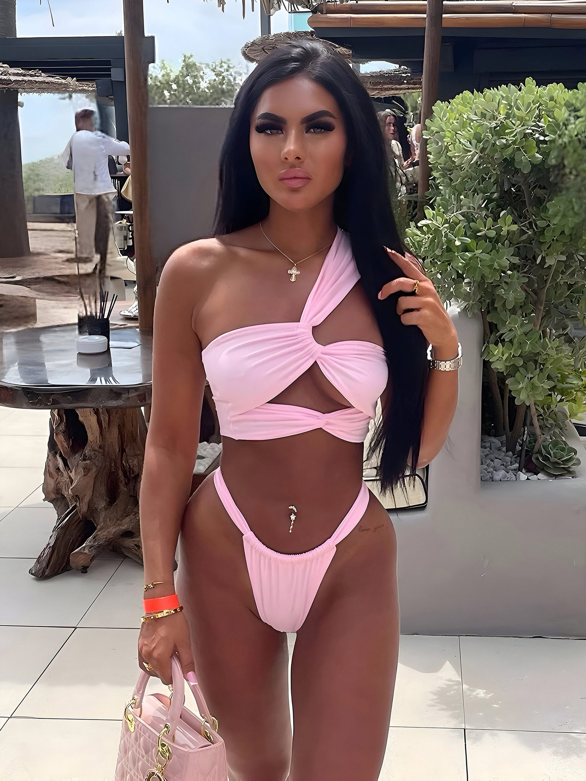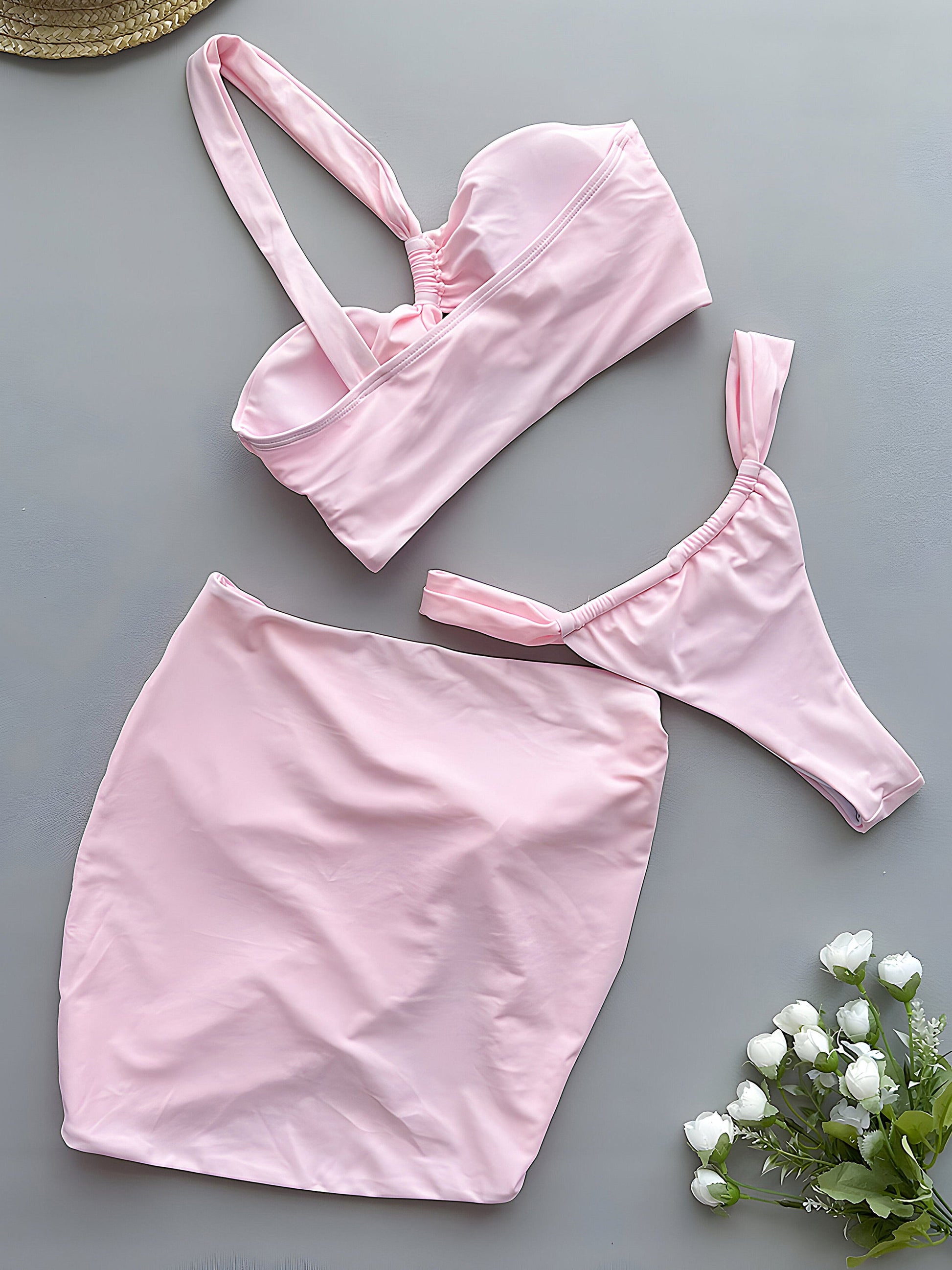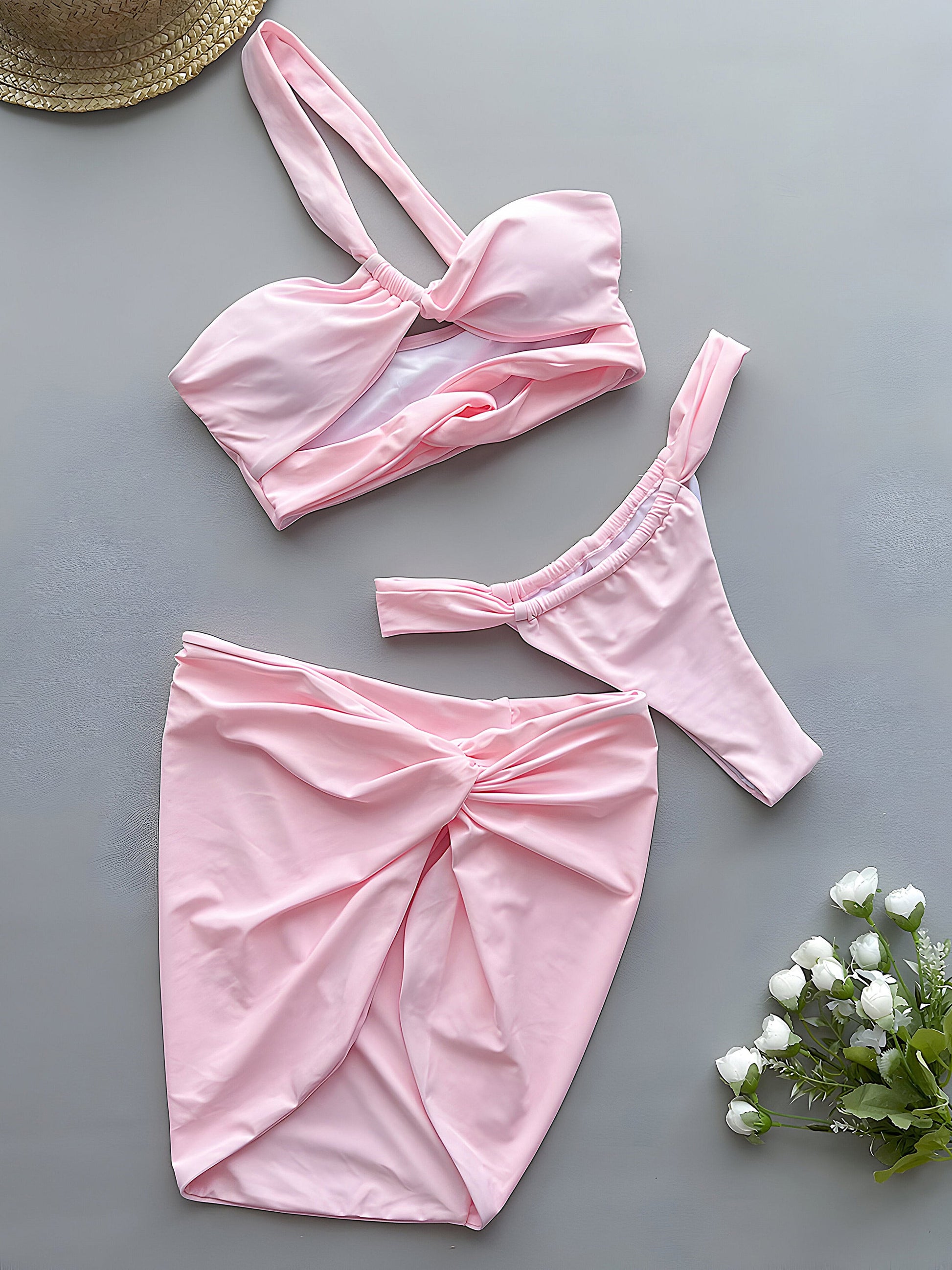 Step into the spotlight with the KEKOKINIS PICASSO bikini set. Featuring a trendy crisscross cut-out and a chic one-shoulder design, this high-waisted bikini offers a sexy and flattering fit. The playful skirt and matching cover-up complete the look, making it perfect for beach days or pool parties. Stand out with style and confidence.