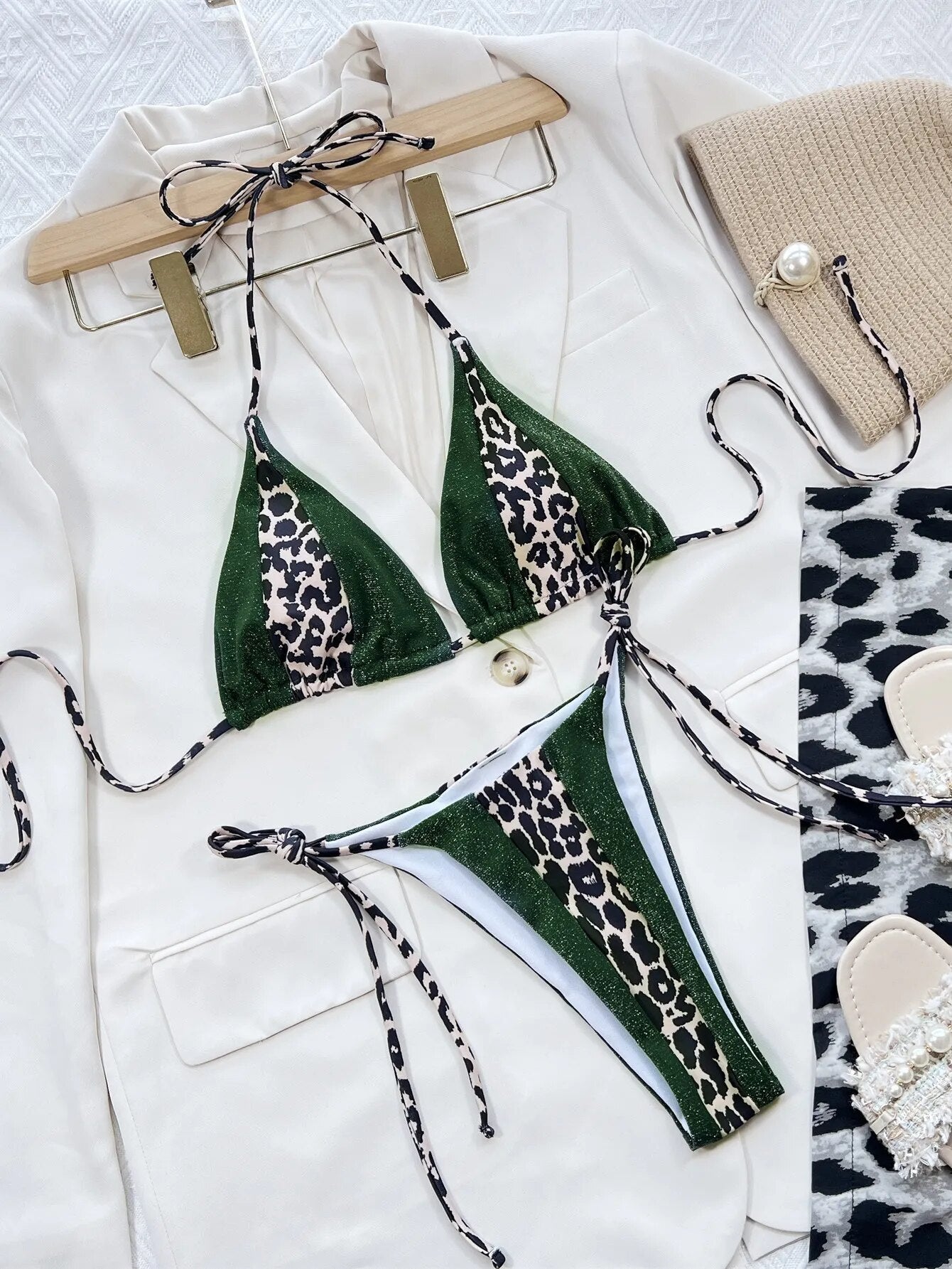 Make a fierce statement this summer with the KEKOKINIS PUTHONG BIKINI SET, designed for bold, fashion-forward women. This leopard splicing halter bikini features a stunning push-up top with lace-up details that enhance your curves and a cheeky Brazilian mini thong bottom for a flattering, low-waist fit. Crafted from high-quality nylon and spandex, this wire-free bikini offers comfort and style whether you’re lounging poolside or soaking up the sun on the beach.