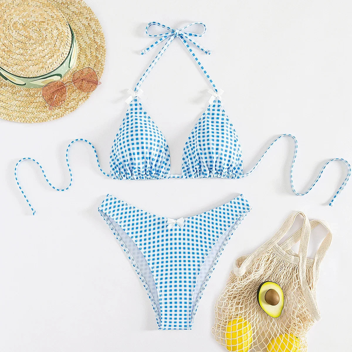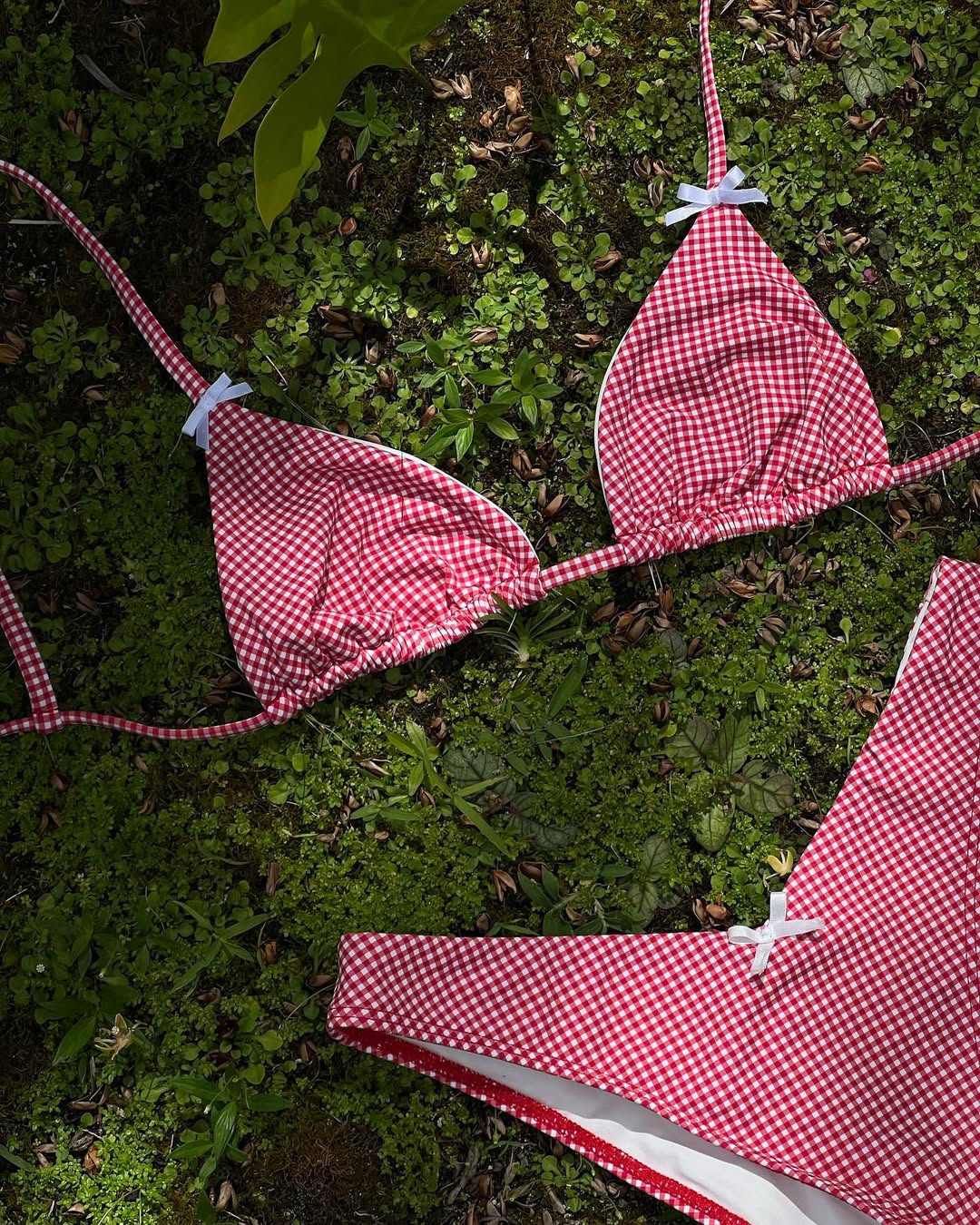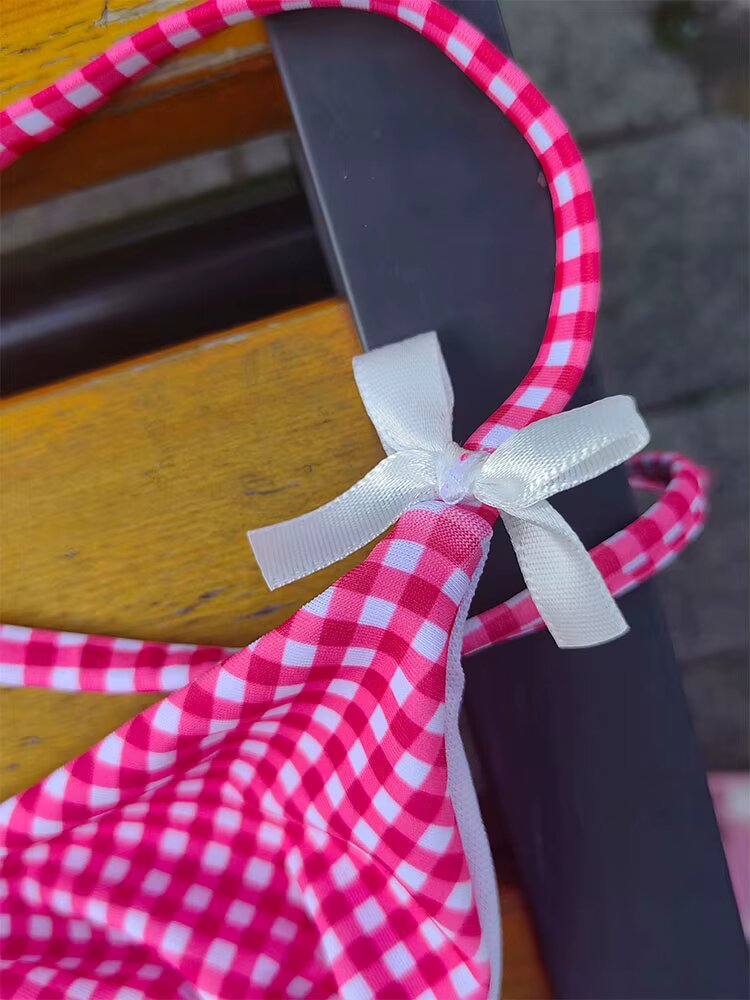Turn up the heat and embrace your bold side with the KAKEY PLAID STRING BIKINI SET—where timeless prints meet modern, sexy cuts for an unforgettable summer look.