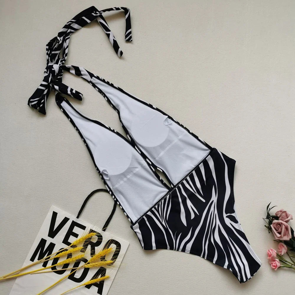 STYLE: One-piece bandage swimsuit with flattering cut and decorative strapping