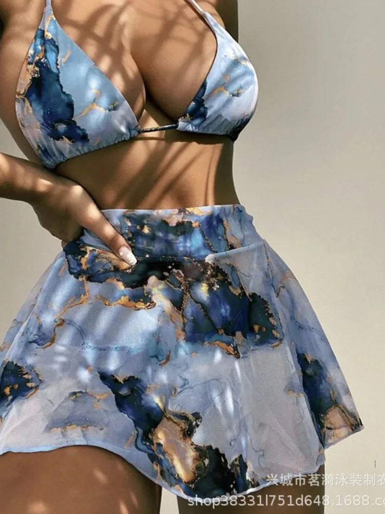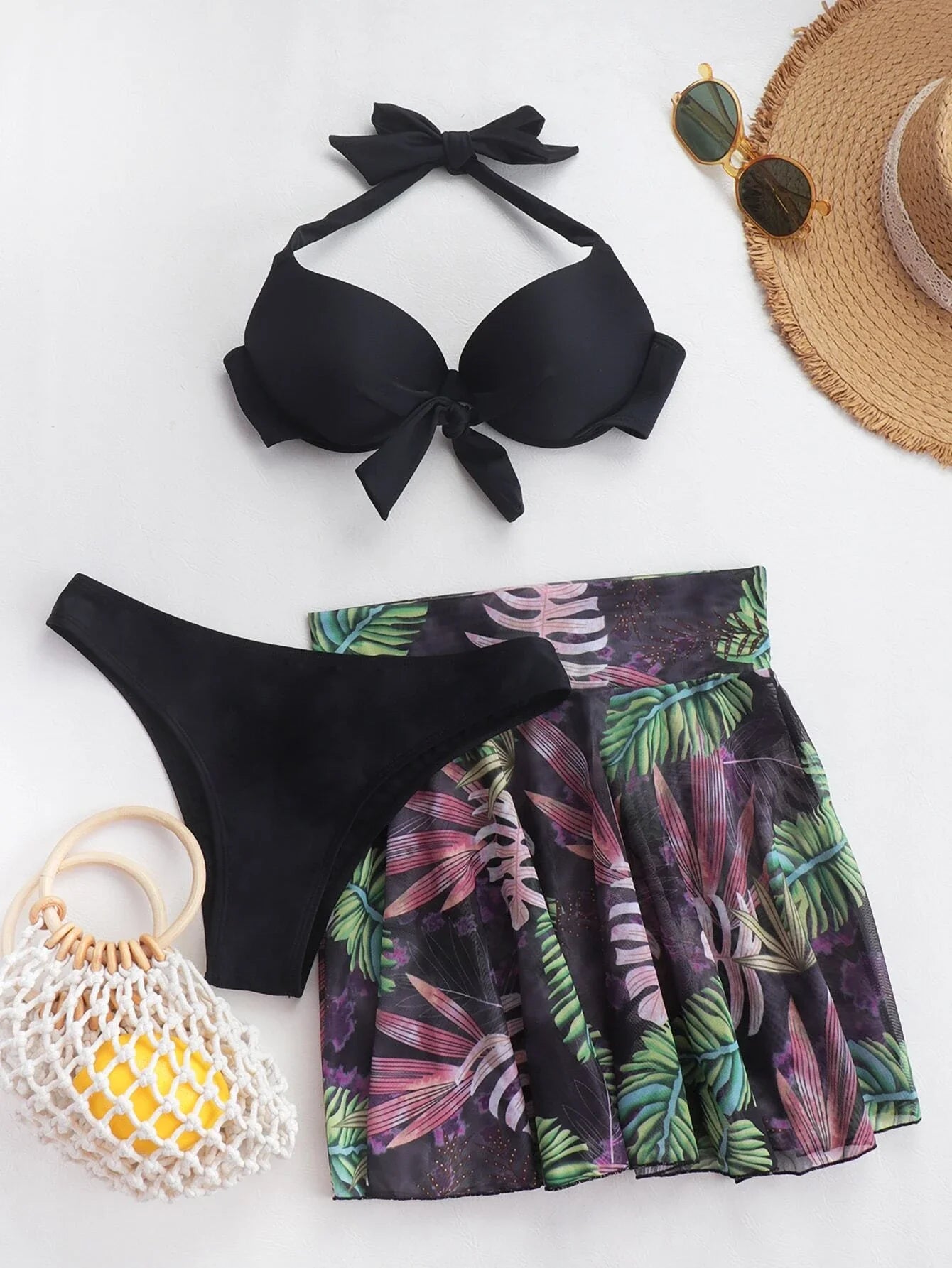 KEKOKINIS SWELTER FLOWER PRINT 3PCS BIKINI SET