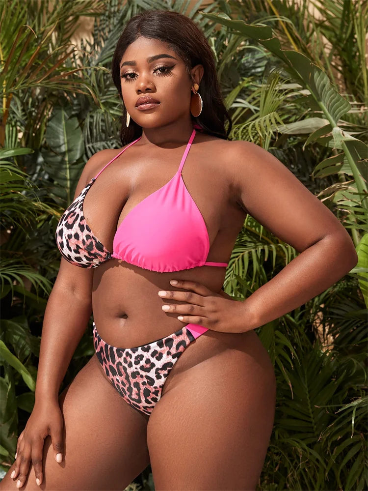 Turn heads and own your curves in the KEKOKINIS TAKINI, a fierce triangle halter bikini designed for confident women with fuller busts. With its sexy thong bottom, low-waist fit, and eye-catching patchwork and leopard details, this 2-piece swimsuit is made to stand out.