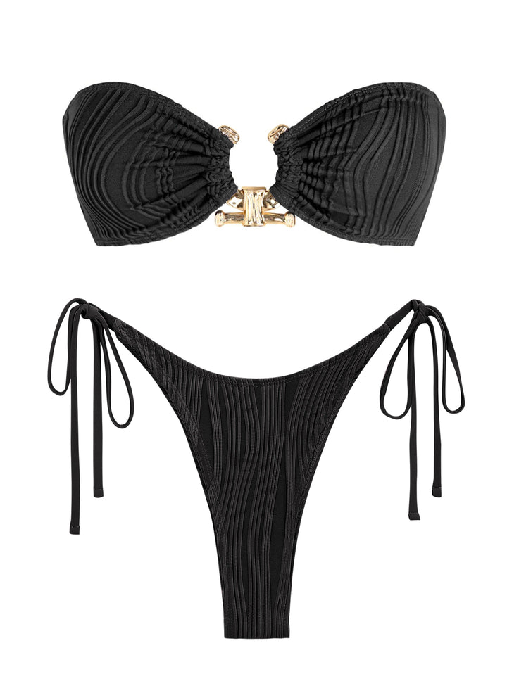 KEKOKINIS STYGIAN TIE SIDE BANDEAU TANGA BIKINI SET