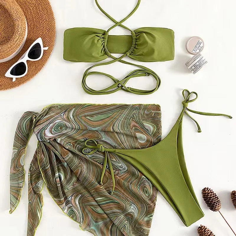 KEKOKINIS THONGILA THREE-PIECE DRAWSTRING LACE BIKINI SET